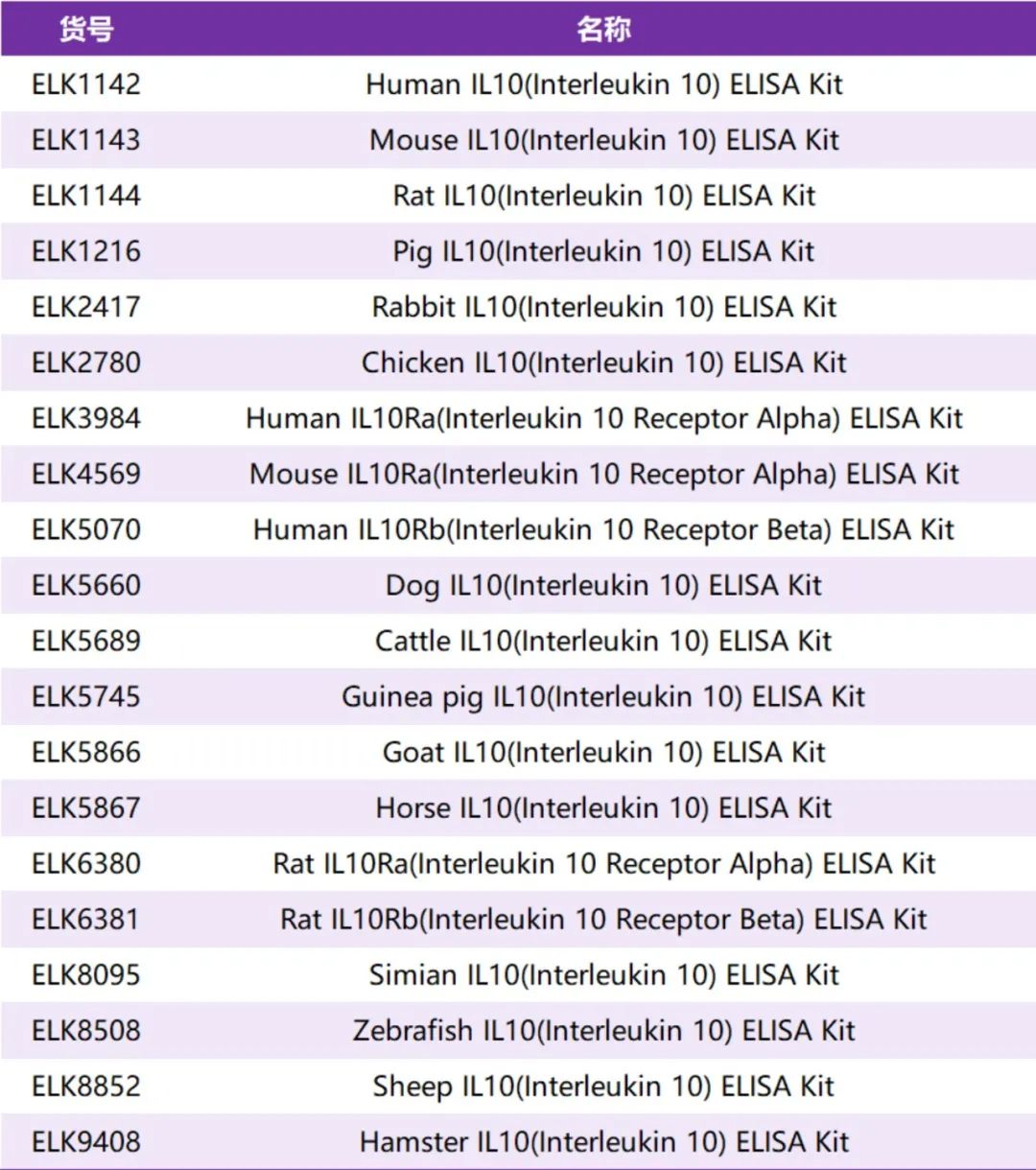 為了幫助科研工作者們更好的研究白細胞介素10,科鹿生物推出了多種類別白細胞介素10相關的ELISA試劑盒: